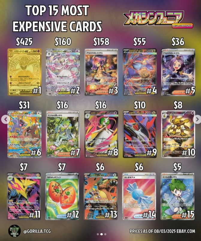 일본판 메가브레이브와 메가심포니아가 약 1주일전에 발매 되었고 두 세트의 모든 카드 리스트는 위의 가장 최신 링크를 참조하면 된다. 8월 3일 기준 메가브레이브/메가심포니아의 가격/시세는 아래와 같다.